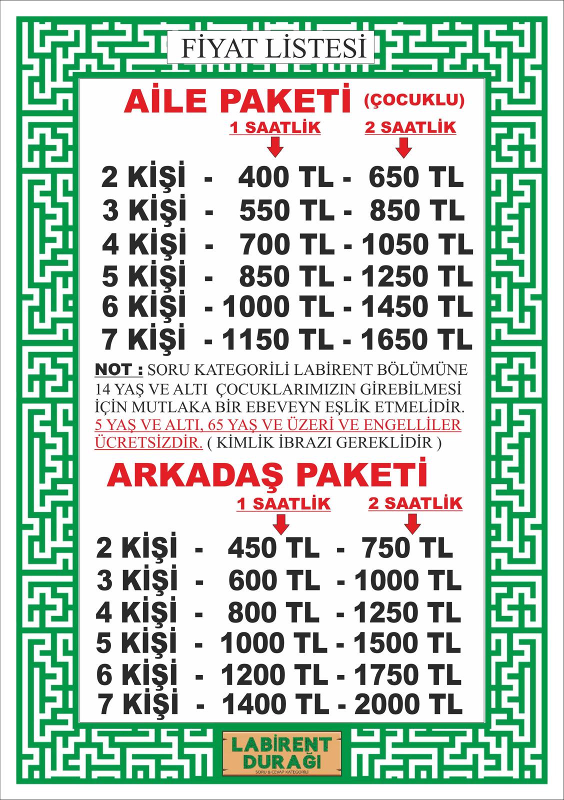*6-14 Yaş Arası : 200 TL* (Ebeveyn eşliğinde “Soru Kategorili Labirent”e giriş zorunludur).